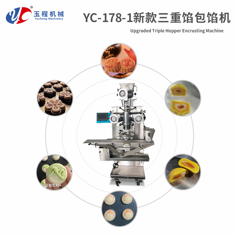 適用范圍:可適用于:烘焙類產品、魚漿類產品、早餐類產品、蒸煮類產品d等,另可生產四重包餡產品如:四重流心月餅、漸變色流心月餅、雙色和果子、金鑲玉月餅。